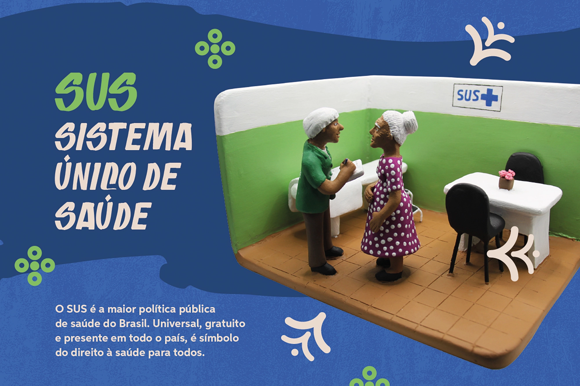 Em 2026, essa proposta ganha corpo, no sentido mais literal. Sob o tema “Modelando o Cuidado: Arte e Políticas Públicas em Saúde”, o calendário apresenta 12 peças em barro, cada uma alusiva a uma política estratégica do Sistema Único de Saúde. O cuidado deixa de ser abstração e se revela como cena, gesto e cotidiano, moldados à mão e carregados de sentido.